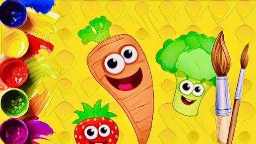 Рисуем красивые овощи и фрукты из мультяшек и раскрашиваем гуашью!