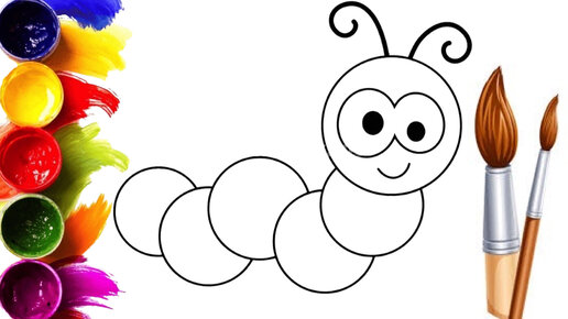 Как нарисовать гусеницу из мультфильма? Рисуем и раскрашиваем гуашью! Поэтапно
