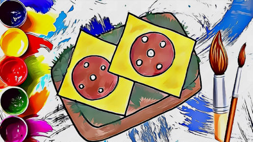 Как нарисовать бутерброд из мультика? Рисуем и раскрашиваем гуашью поэтапно!