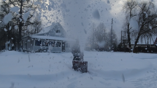Убирать снег на даче веселей со снегоуборщиком и под хорошую музыку!