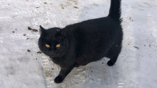 Беременная Чернушка разгулялась на морозе и не собирается идти в дом.