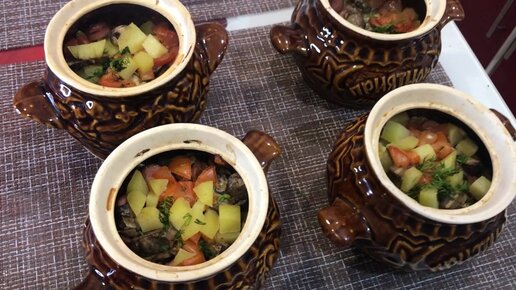 Горшочки с картошкой и сосисками в духовке
