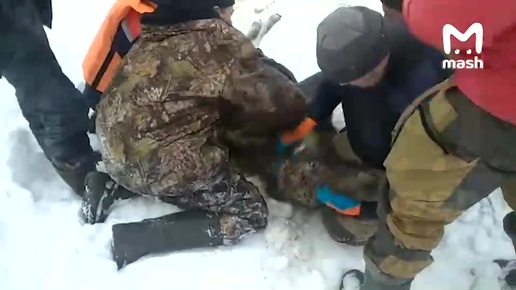 В Московской области спасатели вернули с того света молодую лосиху, провалившуюся под лёд