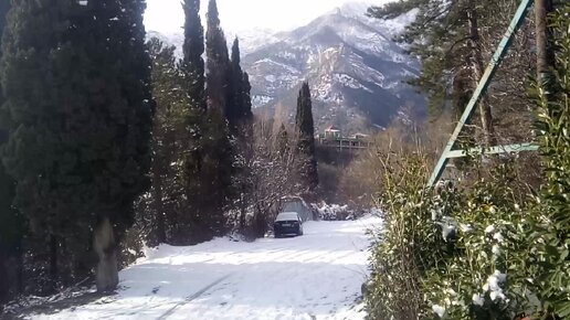Горы и дорога в районе Поляны Сказок (Ялта) в январе