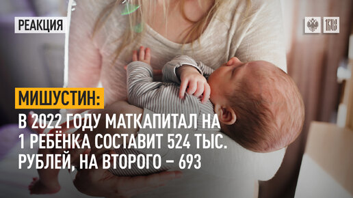 Мишустин. В 2022 году маткапитал на 1 ребёнка составит 524 тыс. рублей, на второго – 693