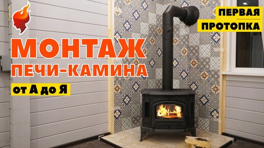 Монтаж чугунной печи-камина и дымохода через стену деревянного дома.
