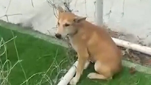 Песика вытащили из сетки футбольных ворот. Как же он перепугался 😩