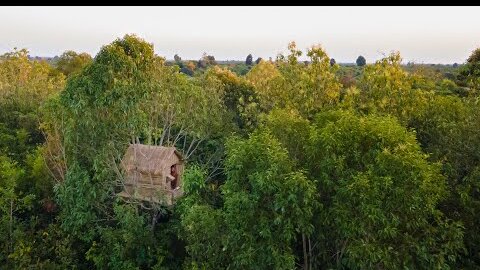 Building a Complete Warm Survival Treehouse, Bushcraft Tree House Shelter