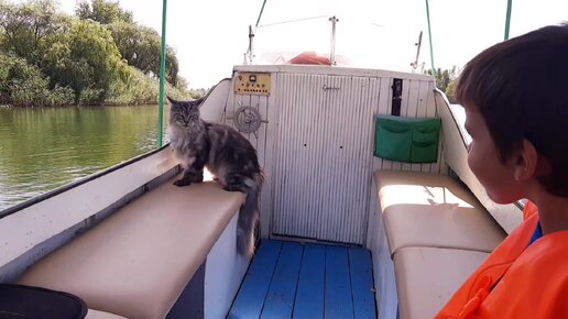 Кот Матроскин на катере.
