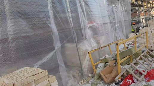 Показываю какой тепляк мы сделали для кладочных работ в холодный период