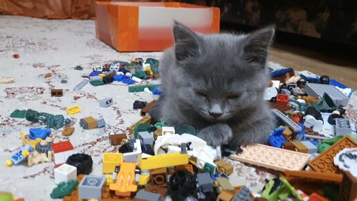 Котёнок🐱 так увлечённо играл с хозяином-мальчиком, что утомился и сладко уснул во время игры