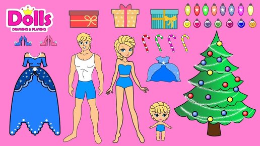 PRINCESS FAMILY CHRISTMAS PARTY PAPER DOLLS DRESSES DRAWING & DRESS UP