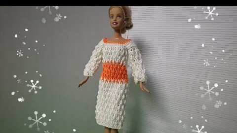 Платье, связанное крючком объемным узором. Мастер-класс. Crochet Barbie.