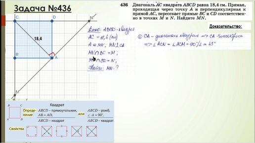 Задачи № 436, 437. Геометрия 8 класс. Квадрат