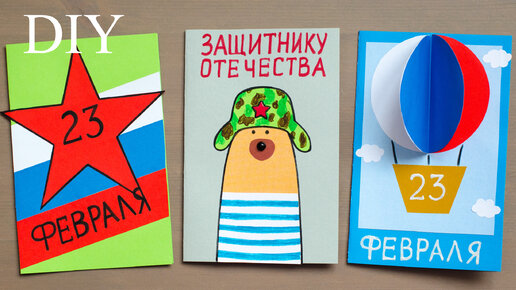 3 ИДЕИ ОТКРЫТОК НА 23 ФЕВРАЛЯ И 9 МАЯ СВОИМИ РУКАМИ