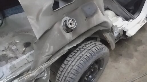 Вытягивание внутренней арки и замена заднего крыла на Лада Гранта в гаражных условиях ( окончательные работы )