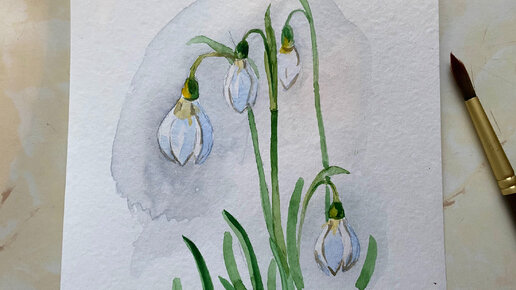 Урок рисования акварелью для начинающих. Рисуем подснежники