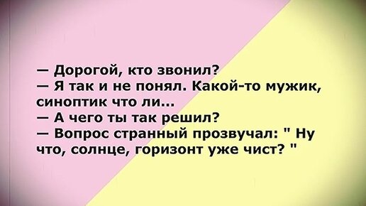 - Дорогой, кто звонил? - Я таки не понял. Какой-то мужик, синоптик чтоли.. - А чего ты так решил? - Вопрос странный прозвучал...