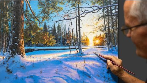 "Зима" (Солнечный зимний день) Акриловая живопись. Художник - Виктор Юшкевич. #97