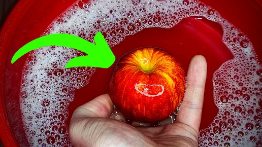 Помыл Яблоко из магазина в тазу. Показываю, что стало с водой