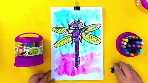 Учимся рисовать стрекозу - Рисуем мелками и карандашами