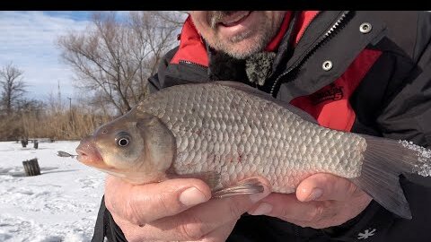 Найшли карася на кивок під очеретом. Зимова риболовля. Як впіймати карася взимку.