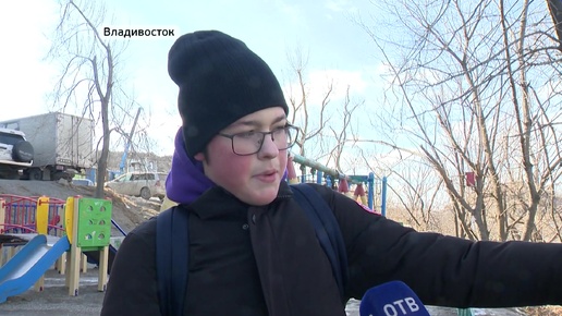 Во Владивостоке вместо лестницы ледяная горка. Что делать пешеходам?