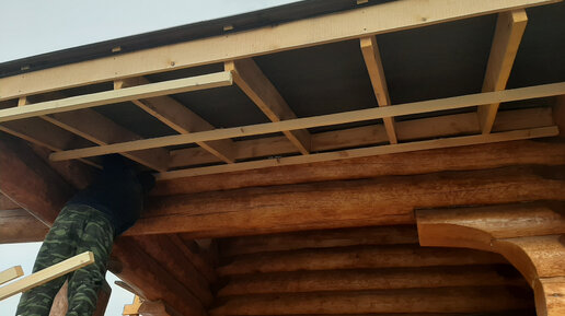 Устройство карниза из необрезной доски в деревянном доме. Этап 1.