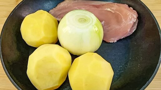Куриная грудка, картофель, лук и вкусный ужин на сковороде для всей семьи готов
