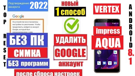 Удалить забытый аккаунт Гугл Vertex Impress Aqua 1 способ