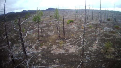 Над Камчаткой на квадрокоптере. Лес, погребенный под вулканическим шлаком.
