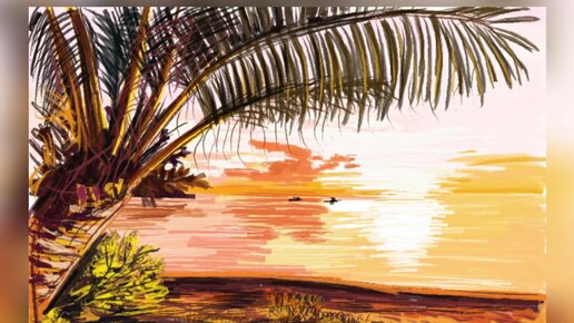 Тропический вечер. Простой и быстрый рисунок в Paint