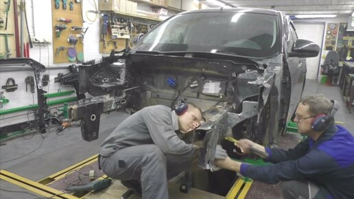 Ниссан Альмера, работа настоящих пацанов))) Body repair after an accident.