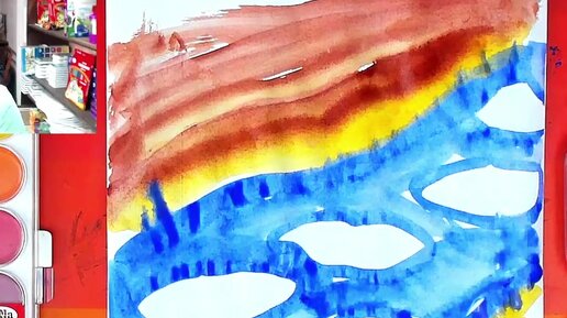 Пейзаж для детей - рисуем красками - ледоход на реке