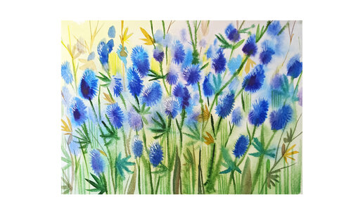 Акварельная зарисовка синих луговых цветов.