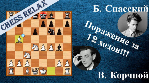 Шахматы. Корчной - Спасский. Разгром за 12 ходов!