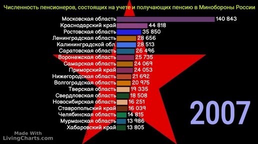 Численность пенсионеров, получающих пенсию в Минобороны России
