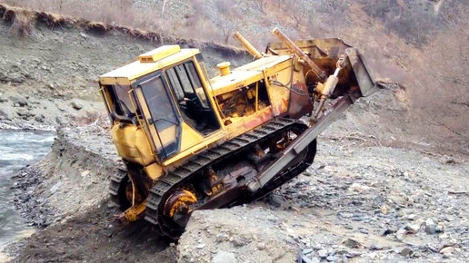 Бульдозер Б-10 встаёт на дыбы выполняя свою не лёгкую работу