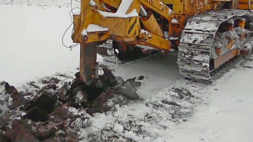 рыхление мерзлого чернозёма бульдозером для дальнейшей раскопки