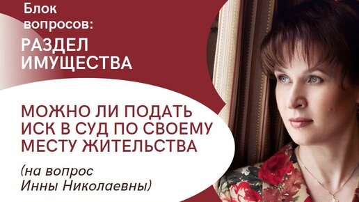 🔴Можно ли подать иск о разделе имущества в суд по своему месту жительства?