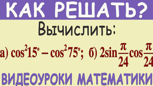 Как найти значение выражения cos²15°-cos²75° и 2sin(π/24)cos(π/24). Тригонометрия 10 класс