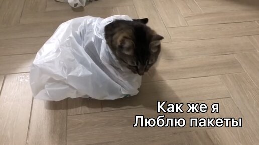 Смешно озвучил, как кошка хочет выбраться из пакета