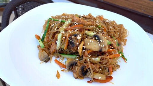 Фунчоза с курицей и овощами! Готовьте сразу двойную порцию!