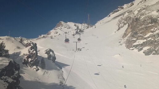 Эльбрус 2022. Подьем от поляны Азау до станции Кругозор. Вид из кабинки фуникулера.