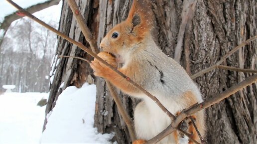 Показываю как белка вскрывает грецкий орех