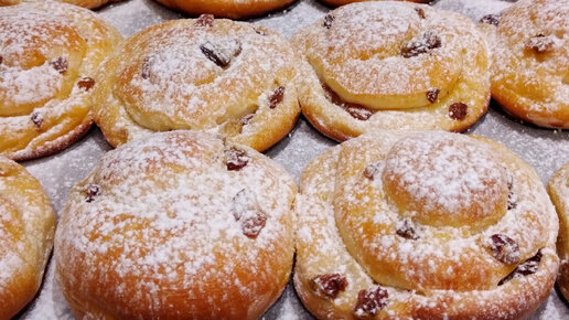 Выпечка к чаю за копейки.Без яиц и масла.Булочки с изюмом.