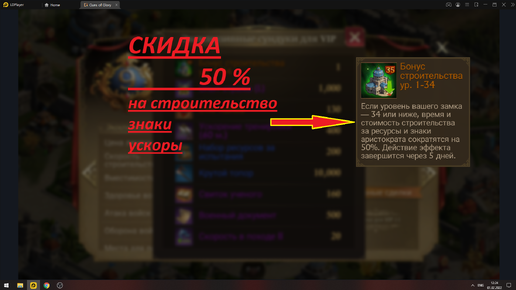 Guns of glory Скидка 50% на строительство и знаки / Бафф 50 %/ новые стражи