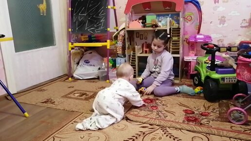 Шестимесячный ребёнок учится ползать