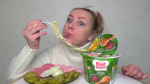 Мукбанг лапша быстрого приготовления Биг Ланч. Еда на камеру.