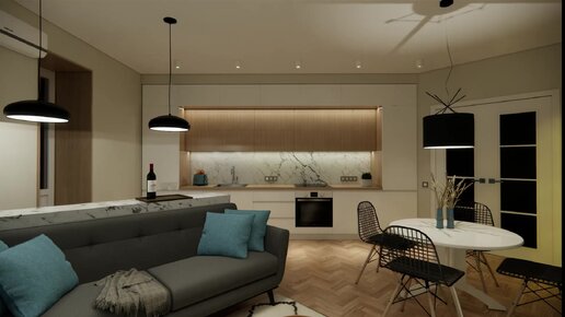 Видеообзор проекта 5-угольной кухни-гостиной г. Липецк ул. Свиридова